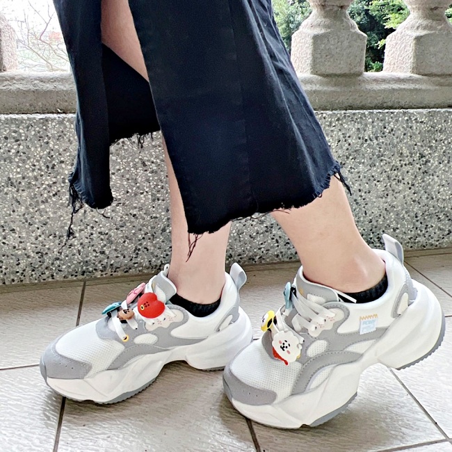 奶油白鞋身加入「霧灰或是米黃細節」,簡約又不失亮點的配色,不管是上課、上班或是出遊都超百搭的NS501厚底慢跑鞋,居然成為宇宙明星的新基地,KOYA,RJ,SHOOKY,MANG,CHIMMY, TATA,COOKY成員們直接變身迷你立體鞋扣、現身在腳上,可拆式自由搭配,想揪哪位巨星一起出門都可以~