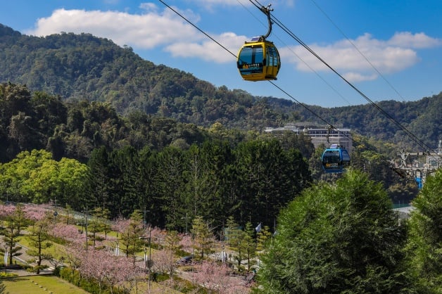 日月潭纜車連結日月潭的伊達邵和九族文化村,兩旁的富士櫻與藍天綠地相襯映,建議妞妞們可以搭乘「日月潭纜車站」俯視櫻花海,欣賞群山環繞,這可是日月潭才有的獨家體驗,絕美不已,不僅如此從纜車上還可看見日月潭水源注入的「大竹湖」、台灣紅茶的故鄉「猫囒山」、原住民邵族部落「伊達邵」,天氣好的時候,更能遠眺北邊的「魚池盆地」和「埔里盆地」,只需要搭纜車就可以入手多個景點!