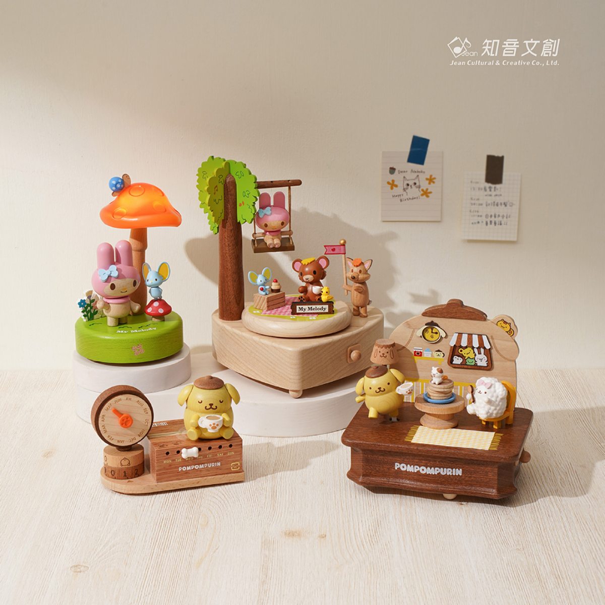 除此之外,7-ELEVEN更與知音文創推出了四款三麗鷗聯名商品,首推美樂蒂以及布丁狗的「音樂鈴」,看著布丁狗與夥伴們愉快地吃著鬆餅、瞬間就覺得超療癒;另外還有美樂蒂「造型家居燈」與布丁狗磅秤「音樂萬年曆」,木製的手感非常有質感呢。