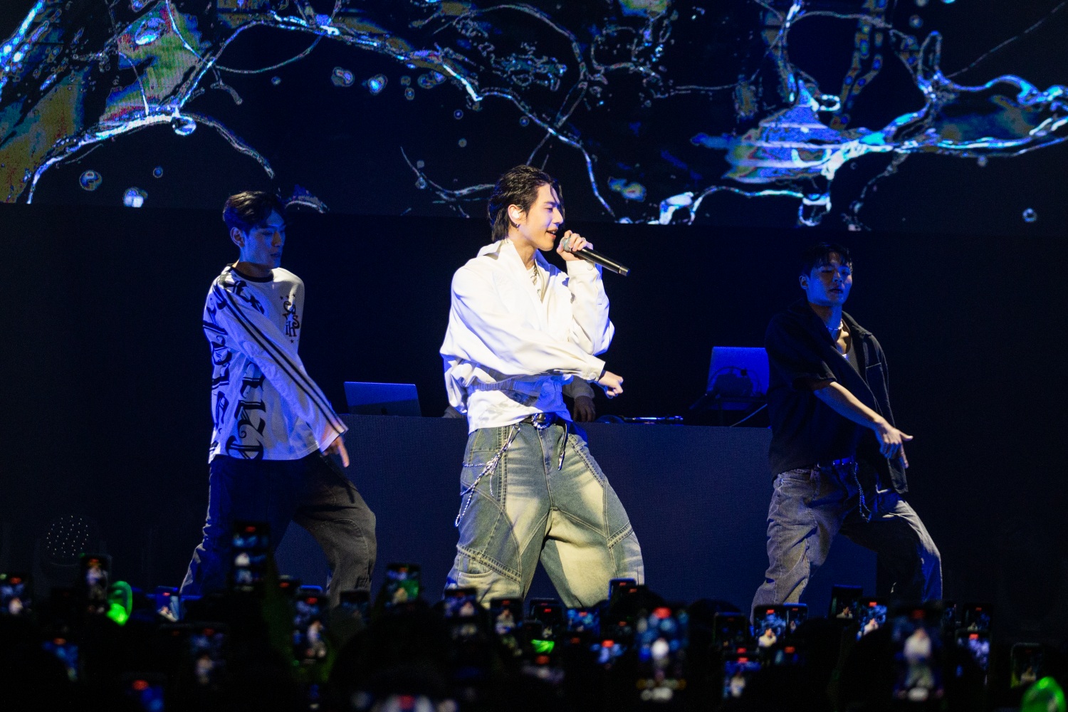 第四首〈Falling In Love〉中途時,還以超魅惑的聲音,對大家告白:「I LOVE YOU」(我沒了),鳥寶寶們也用準備很久的應援回應,為努力表演的有謙製造浪漫驚喜,綠色紙張排成韓文的「很帥氣」、手上舉著「we won't leave you alone」橫幅,實現了偶像與粉絲之間的雙向奔赴!