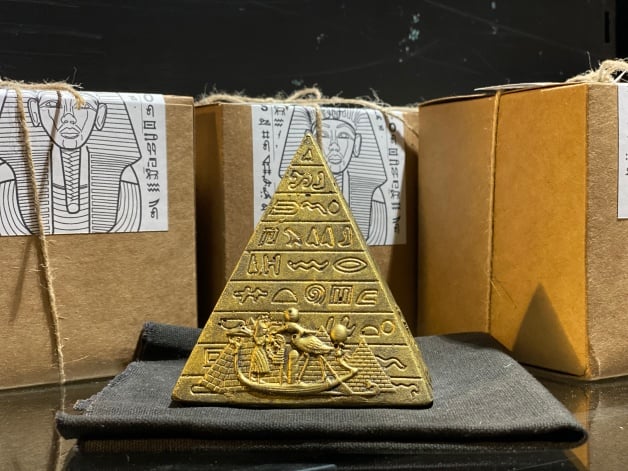 在展區的最後有商售區,品項包含香氛、蠟燭、T-shirt、明信片等,妞編輯大推木乃伊造型的「紙鎮」,蠟燭除了有金字塔之外,還有圖坦卡門和貓神貝斯特三款,香水的部分有兩款台灣限定味道喔!