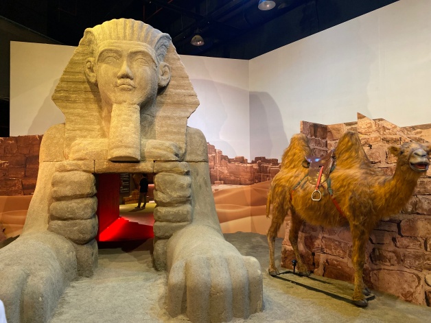 現場更還原位於在卡夫拉金字塔旁的「人面獅身像」,是現今已知最古老的紀念雕像,究竟是誰建造依然是個謎!