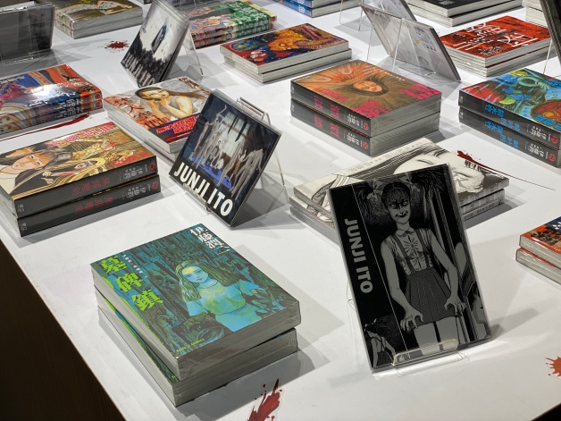 展覽限定周邊有滑板、富江抱枕、狂熱塑膠海報、美少年時鐘、吸水杯墊、明信片等,其中特展限定圖品項絕對必收,像是明信片和資料夾,精緻又驚悚,收藏價值極高!