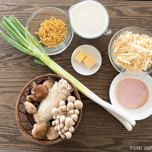 奶油焗烤蔥菇通心粉的材料(2人份)
