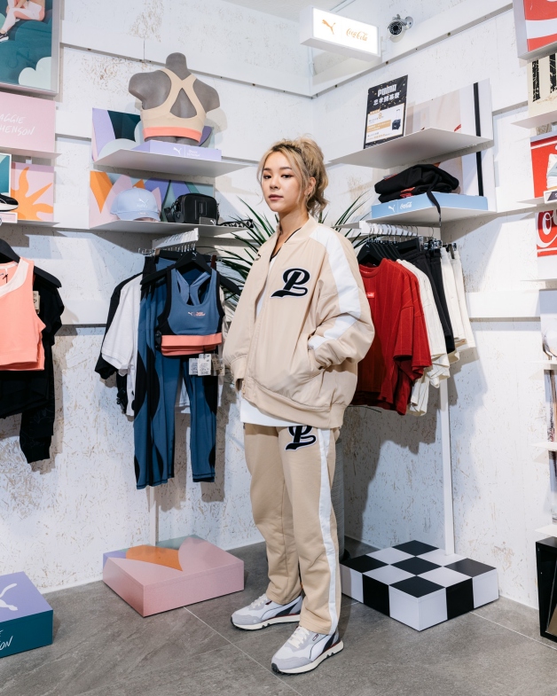 現場直擊由潮流學長姐們演繹的美式復古標竿!最強新生代、饒舌新星吳霏搶先代表示範嘻哈運動風,他一穿上便分享「雖然平時比較少一次在身上出現這麼多顏色,But I feel not bad。」吳霏用穿上就夠帥的經典灰色長袖連帽 T 恤搭配壓印上大 P 布章的酒紅教練外套,緊扣品牌標誌以顯眼撞色襯托新輪廓,展現擁有自我型格的率性範,重現 90 年代狂放不羈的街頭嘻哈 Style。而穿搭風格百變的創作新銳九九也親自搭配心屬的 PUMA TEAM 美式學院風,用 Monotone 米色調掌握復古趨勢,內搭 Preppy 象徵的 V 領毛絨衫,笑著分享道「我平常私底下都以黑白簡約穿搭為主的,這次難得嘗試米色系美式學院風運動套裝,真的是一試就愛上,很喜歡運動時尚這種可以很帥氣也可以很辣的風格! 」九九運用運動套裝穿搭將學生時期的熱血青春發揮淋漓盡致,讓可鹽可甜的百搭單品內化成專屬於九九的玩味 P Fashion。
