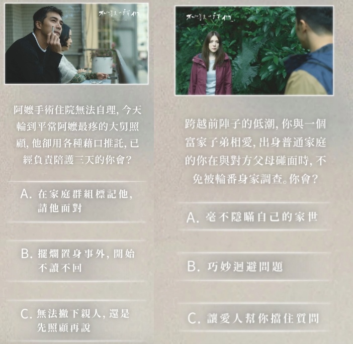 註:測驗問券設計與故事劇情無關。