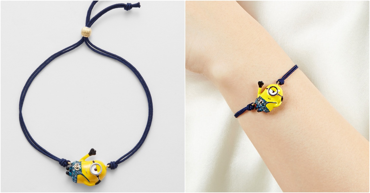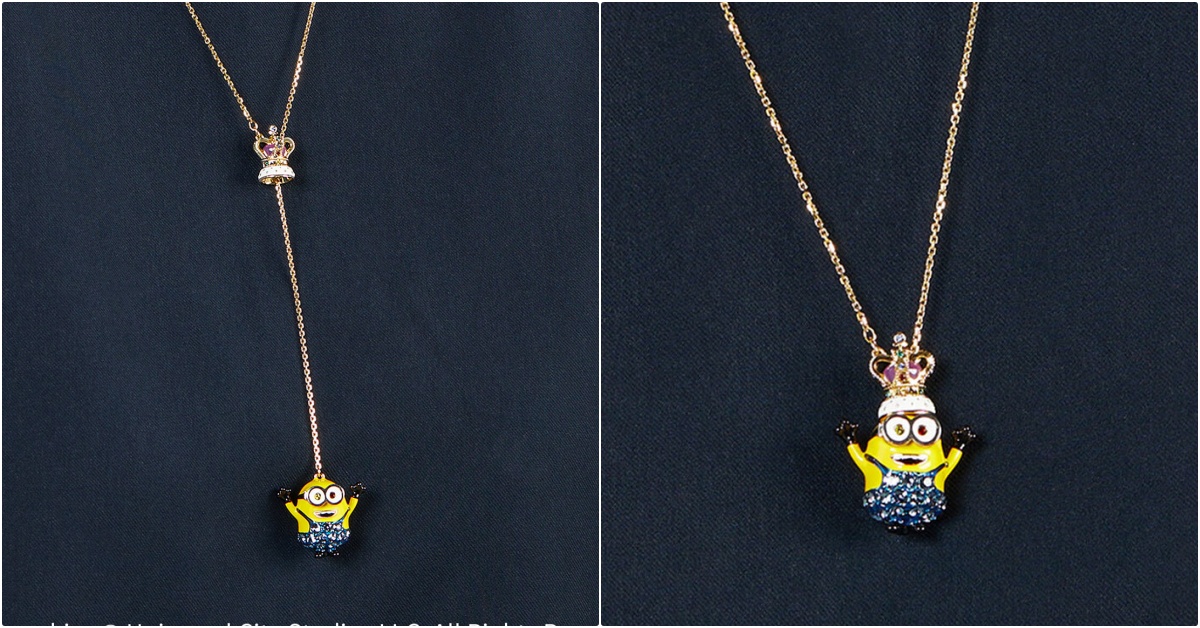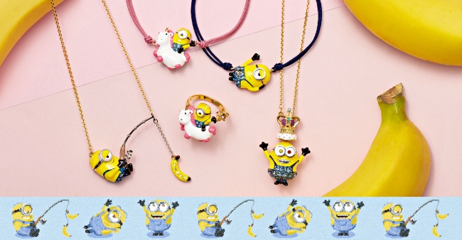 沒錯,又是史都華當主角!一端是超鬧的史都華、一端是小小兵最愛的水果香蕉,「史都華釣魚釣到香蕉」的幽默設計變成項鍊配戴上身,而且是鑲鑽的奢華版本,另一款則是樂極生悲(?)打造成拿不到香蕉的懸吊畫面,長鍊可以調節長度,搭配史都華驚恐的表情超生動,還能收戒指、手環一個SET戴上身!