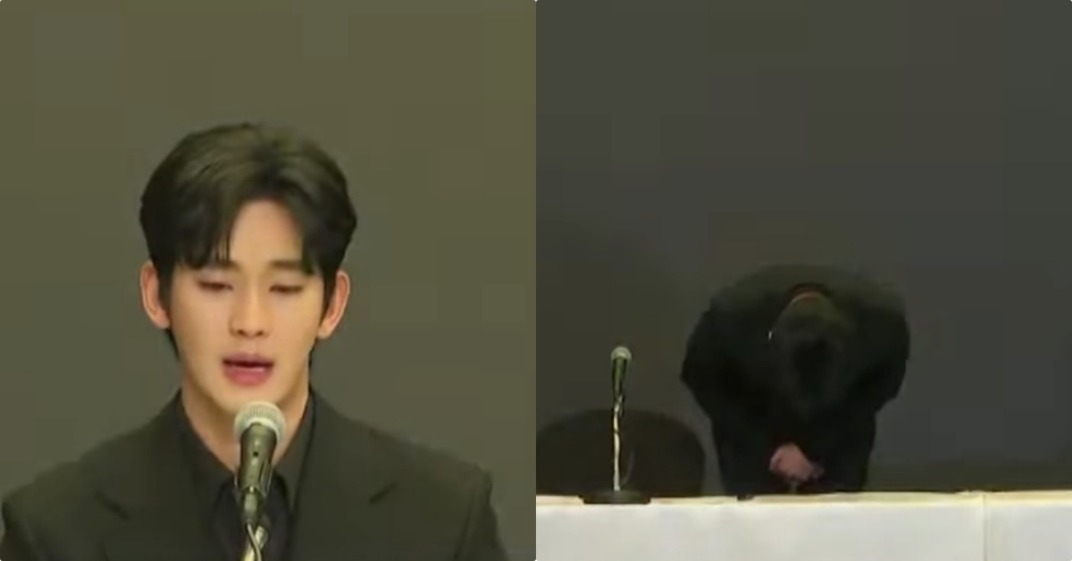 金秀賢穿著西裝外套、襯衫,一身黑現身記者會現場,表情沈重僵硬,他表示:「總是想著逃避的我,所以才花了很久的時間坐在這個位置,想著一開始就這樣面對會怎麼樣?」透露在2020年播出的《淚之女王》前就分手已久,反覆提及《淚之女王》時就應該承認交往事實,但是選擇否認,以及對於親友、粉絲的抱歉,言談之間情緒越來越高漲,流淚哭腔爆發表示:「我是個膽小鬼」,甚至起身鞠躬道歉。