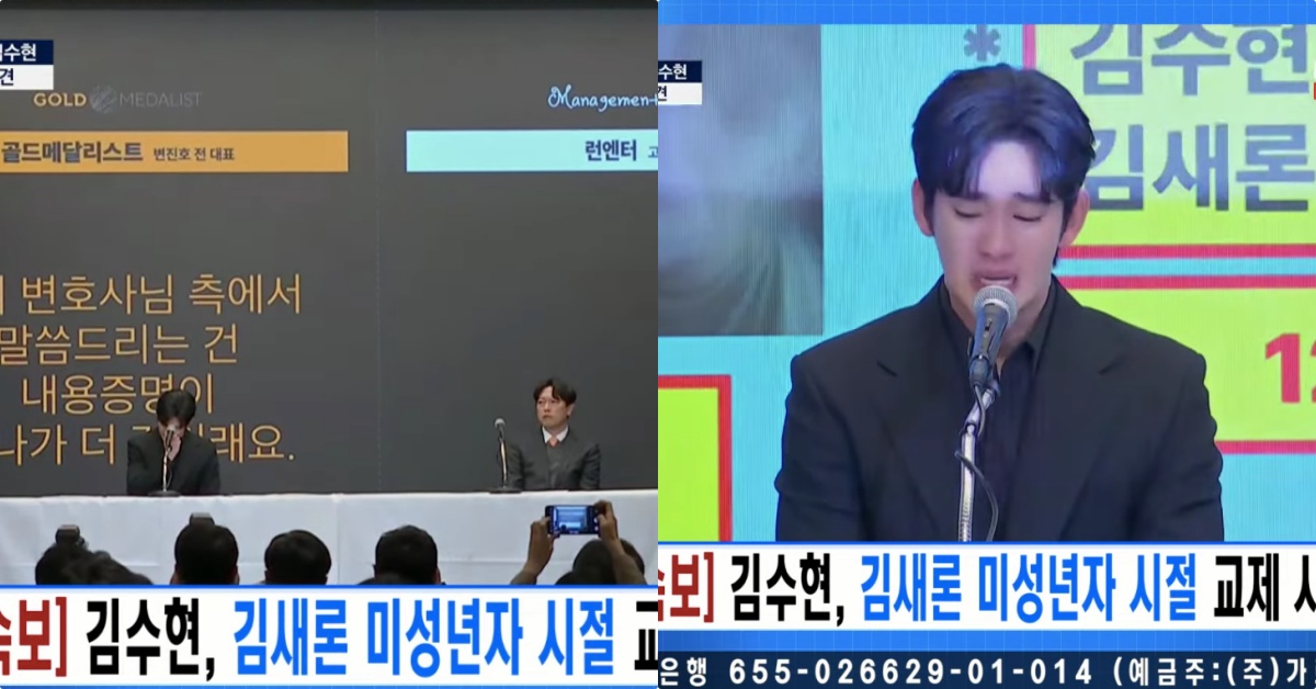 流淚不止的金秀賢,同時對於爭議親上火線說明,他堅持沒有在未成年時期就交往金賽綸,同時堅稱:「我以及公司沒有追債壓迫金賽綸」,強調:「我們是相愛而交往的關係,跟大部分的人都一樣」,同時提及金賽綸發生酒駕事故時,雖然知道但是對方已經有新對象,因此「無法輕易的聯繫對方」,哭喊:「指控不是事實!都是我沒做的事情!」