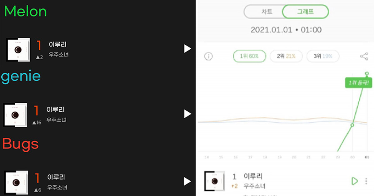 自從宇宙少女在2019年發了第七張同名迷你專輯《As You Wish》,這首歌幾乎變成韓國人新的一年必聽的歌曲第一位!不僅如此,只要在12月的最後一天,〈As You Wish〉就會開始在韓國的各大音源榜單上逆行,跨夜後排名更瞬間上升來到一位,可以說是韓國近期新的一年的代表歌曲呢。