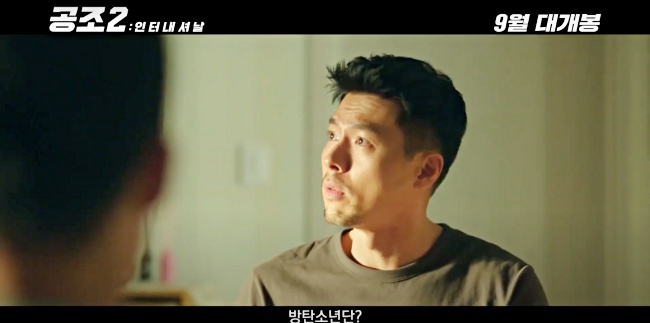 紅遍全球的KPOP代表團體防彈少年團(BTS)居然也有戲份(笑)?在預告片中,玄彬疑似聽到有迷妹談論到偶像,一臉恍然大悟的重複:「防彈少年團?南朝鮮也有這種團體啊!」,就在眾人驚訝北韓難道也有人氣男團時,玄彬欣喜表示:「我叔叔也是朝鮮少年團出身」,爆笑誤會超有梗,還被柳海真DISS:「變幽默了嘛~」,《機密同盟2》定檔在9月7日韓國上映,台灣粉絲們請再等待一下!
