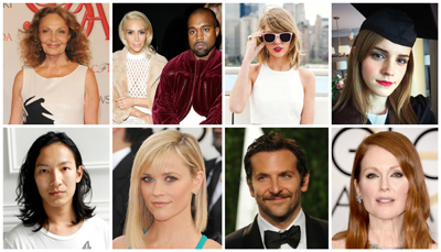 回顧去年尾聲到今年,不少企業家、影星、作家或是國家領袖都對我們所處的社會造成或多或少的影響。美國《時代雜誌Time Megazine》最近公布了2015年全球最具影響力100人名單,包括美國總統歐巴馬Barack Obama、蘋果現任CEO庫克Tim Cook、日本作家村上春樹Haruki Murakami、美國CFDA設計師協會主席黛安馮佛絲登寶格Diane von Furstenberg、華裔設計師王大仁Alexander Wang、高喊性別平等的艾瑪華森Emma Watson、演員瑞絲薇斯朋Reese Witherspoon及茱莉安摩爾Julianne Moore、大帥哥布萊德利庫柏Bradley Cooper、冰島歌后碧玉Björk、小天后泰勒絲Taylor Swift等人,而名單中讓人跌破眼鏡的竟然有話題女王金卡達夏Kim Kardashian West,想當然老公肯伊威斯特Kanye West自然也在這個榜上。不管你服不服,現在就讓我們來看看入選原因吧!