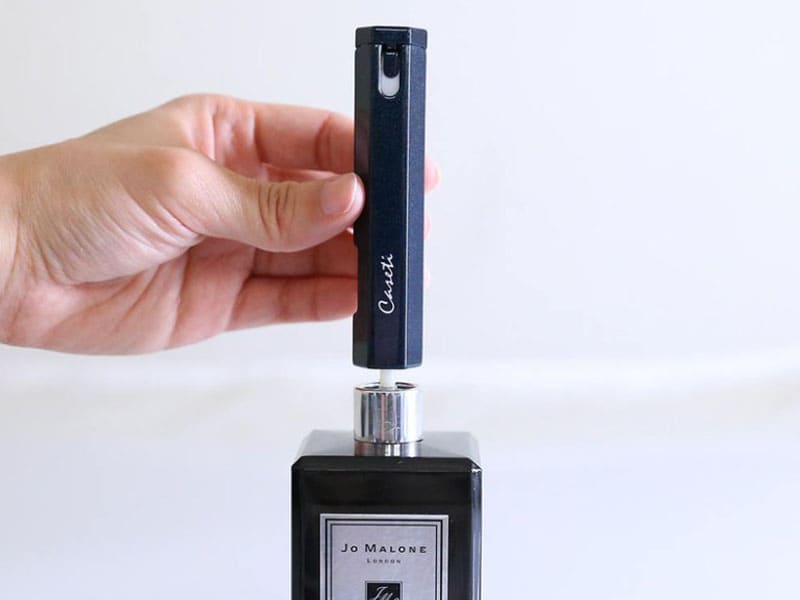 如果香水太大瓶、不好攜帶出門,市面上有許多香水分裝瓶可以直接購買,一般來說分裝瓶的底部會有個補充孔,只要將香水的噴頭取下,將分裝瓶的補充孔垂直對準按壓後,香水就會直接進入瓶內。