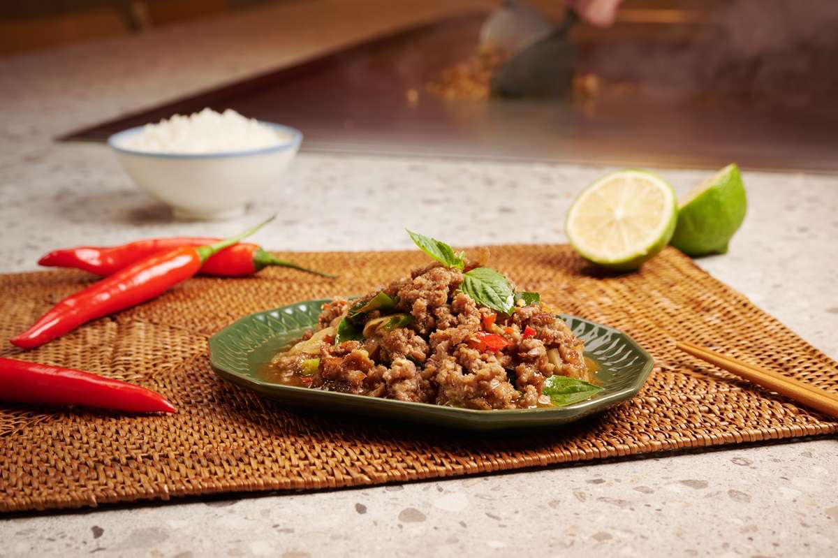 「就饗鐵板燒」即日起推出三大全新「通緝飯」主餐:「爆醬起司和牛漢堡排」濃厚起司在鐵板上緩緩流動,包覆焦香比例完美的和牛漢堡排,肉汁與起司交織,每一口都濃郁爆擊。「當紅辣子雞腿排」外皮香煎酥脆、肉質鮮嫩多汁,搭配滿滿香辣脆片,層層辣香直衝味蕾。「酸辣打拋和牛」將和牛肉燥結合泰式打拋調味,酸爽開胃、鹹香下飯,是春季最具話題性的和牛新吃法。每一道都是停不下筷的邪惡美味,「就饗」邀請饕客一起拿起筷子,共同打擊「飯罪」。