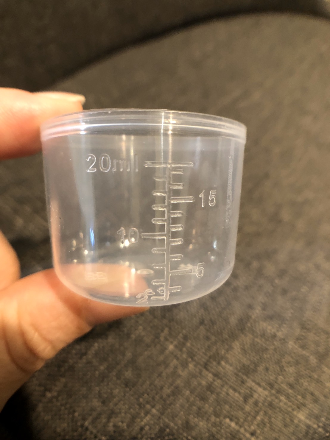 1. 準備家中的(含氯)漂白水,量20ml。20ml大約是免洗湯匙一匙,或是一次性的量杯工具。(小朋友喝藥的量杯、米杯、漱口杯瓶蓋……都有刻度)