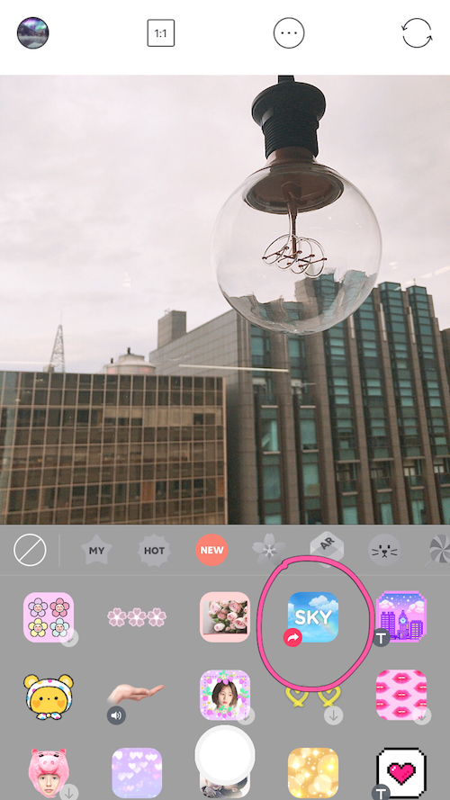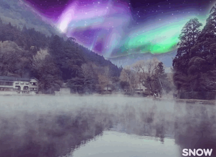 如果想要讓天空動起來,就利用《Snow》裡面的「Sky」特效吧~裡面有藍天、煙火、夜空、極光等濾鏡可以選擇,每款濾鏡的效果都超夢幻!