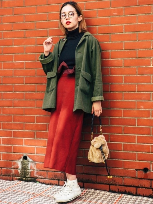 橘色高領素色上衣搭配牛仔褲簡單又亮眼,搭上橘色的好朋友紅色系單品,兩者相得益彰,還能互相呼應,整體感覺潮流個性卻又帶點復古風情。