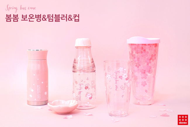 韓國大創推出「봄봄시리즈」(春春系列),一眾粉色商品,從餐具、水杯一路到腳踏墊,每一樣上面都是櫻花圖樣。讓妞編輯少女魂都熊熊燃燒了!