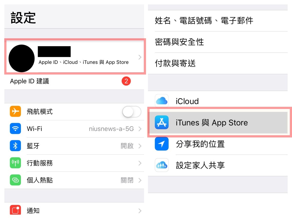 設定→Apple ID→iTunes與App Store→Apple ID→檢視Apple ID