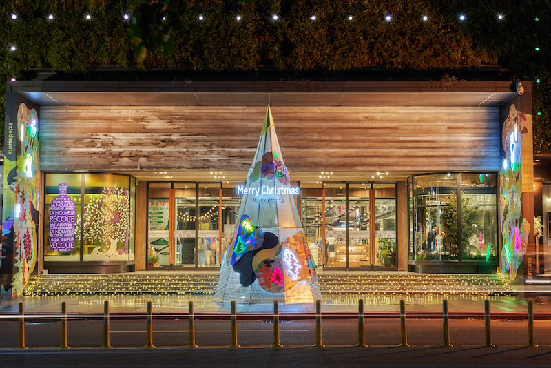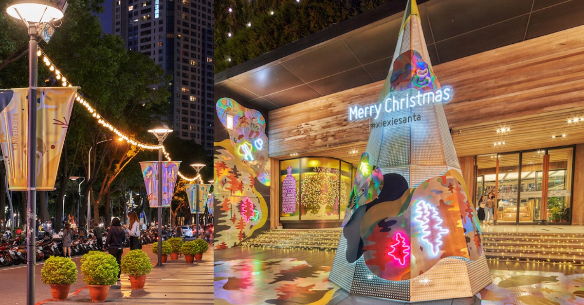 一旁還可以看到5名藝術小精靈,攜手打造出藝術氛圍的視覺饗宴。這5位藝術家分別是CHIHCHIH、MICHUN、HOM、慢熟及包大山個別創作的專屬圖騰,溫暖色調與色塊,讓勤美誠品的聖誕fu有了更多文青味。