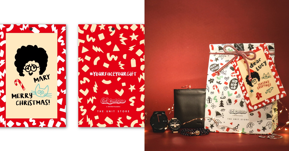 連包裝都客製化才叫有心!THE UNIT STORE與曾經跟Uniqlo、Niko and...和 Beams等多個知名日本品牌合作的日本人氣插畫團隊「Bob Foundation」聯名推出聖誕節限定包裝 #YourFaceYourGift,上面有可愛的插圖和爛漫的色彩,以及團隊標誌性的卡通人像插畫,除了特別設計的可愛包裝袋外,更附送有五官和個性小物的造型貼紙讓你拼湊出送禮對象的模樣,從12月7日起,只要在THE UNIT STORE 購買任何商品,即可獲得 #YourFaceYourGift 聖誕節限定包裝一份!