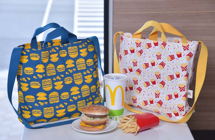 這回與台灣設計師印花布品牌─印花樂合作,設計出專屬麥當勞的花色,並結合現下流行的街頭時尚風格,做出可肩背、手提兩用帆布包。值得一提的是,此次的「印花樂百搭包」全數都是由高雄「大愛縫紉手作坊」手工車縫,一群曾經歷過八八風災的在地媽媽們、彼此鼓勵扶持,創造出地方的新生,這也使得「印花樂百搭包」更有溫度、更有意義了。