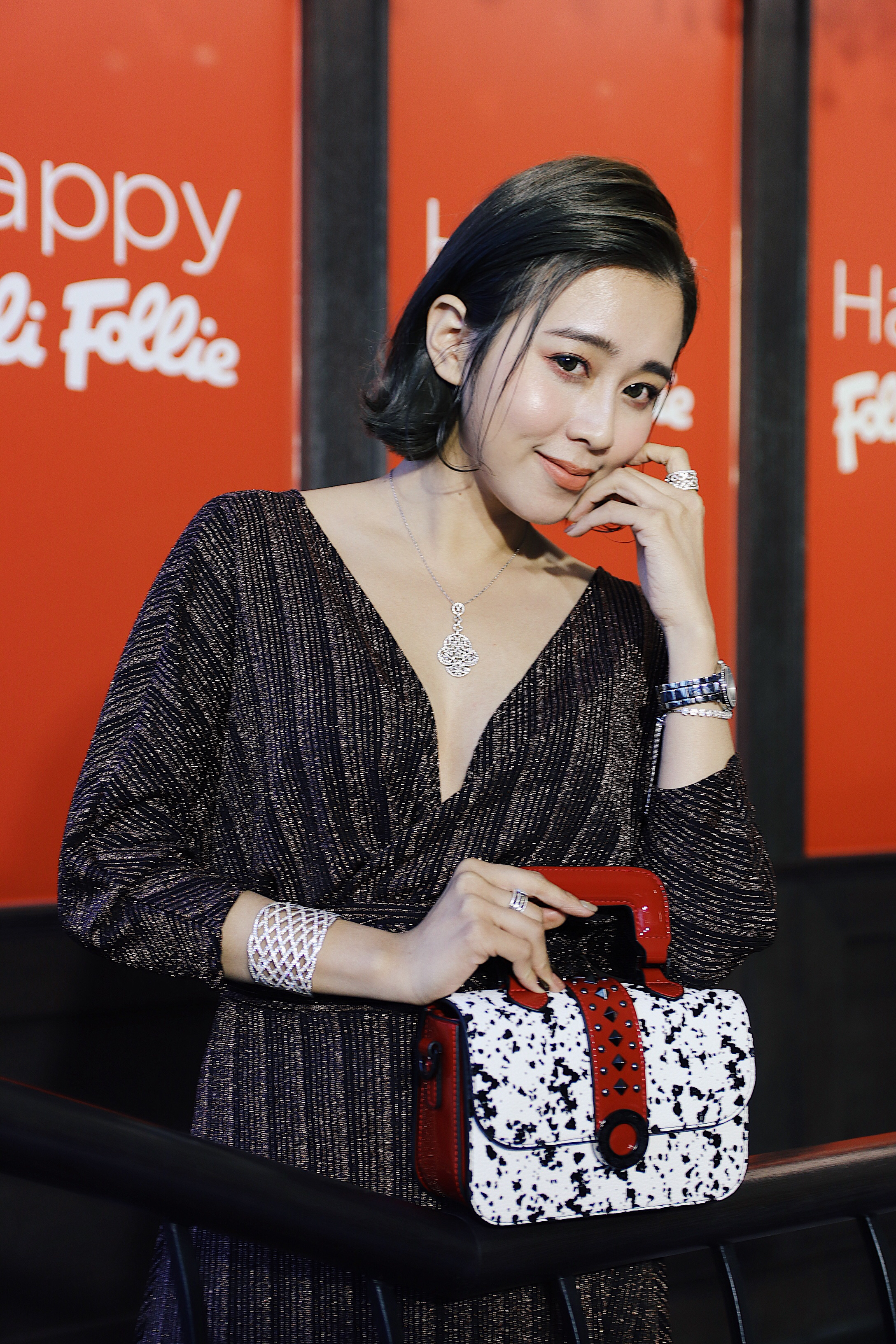 唐葳表示:「參加Party就是要很閃耀,配件上我會選擇多鑽設計,像是我身上戴的Folli Follie手錶(外面有一圈鑽)、手鍊、項鍊也是屬於比較多鑽,設計上不會太浮誇,奢華但又不俗氣、大方又有氣質。」