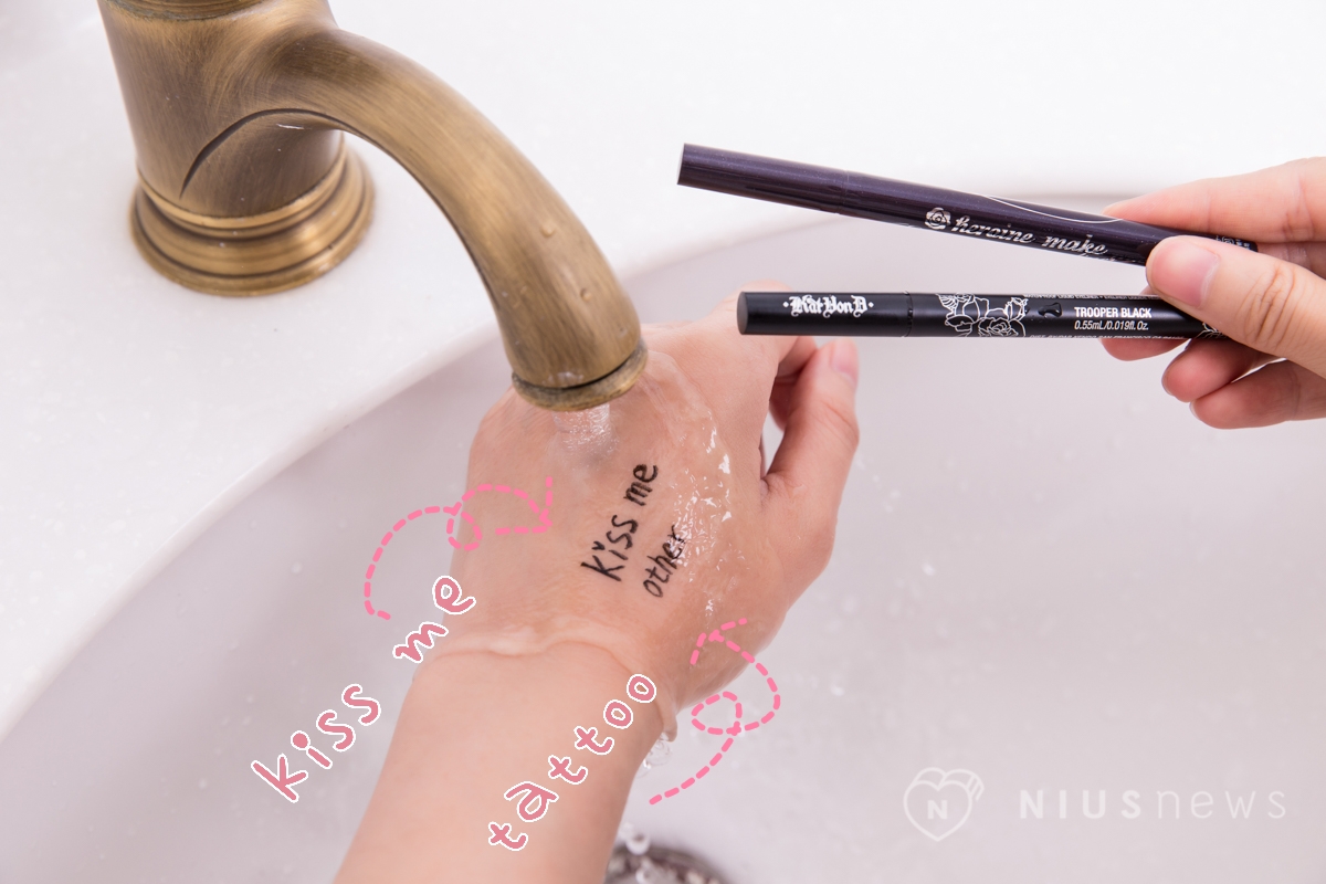 天呀~~測試結果也太驚人了!kiss me的零阻力眼線液筆色澤飽滿且濃郁,超強顯色度讓女孩怎麼畫都很完美,且論功能性來說也是不會輸!具有防水效果,無論是夏天大噴汗、下午眼皮出油,都無法阻止他停留眼睛的決心(握拳)持久性upup的配方,讓女孩一整天都維持美美狀態。且筆頭只有0.1mm的細緻,拿來勾勒迷人眼尾不、失、手。當要卸除它時,不用辛苦嚕到眼皮破皮,只要用溫水就能卸妝~