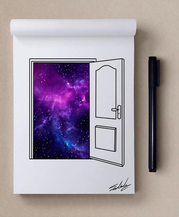 打開門就能飛向宇宙!彷彿做了一場白目夢的星空×現實生活奇幻插畫