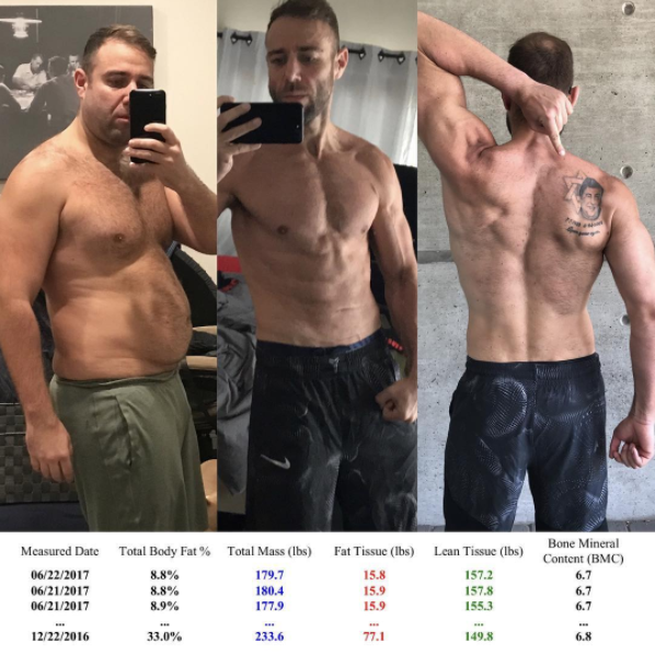 也因為他真的沒有失敗的本錢了,所以他非常認真努力地運動,搭配嚴格的飲食控制,這位仁兄竟然真的在短短的半年內,讓體脂肪從33%變成8.8%!!!