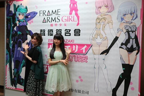 今日動畫代理公司木棉花,於漫博舞台舉行《機甲少女》中為角色「白茉汀莉安」、「黑茉汀莉安」以及「魔鷲」配音的「山崎惠理」以及「阿部里果」兩位聲優的簽名會。以感情探索為主軸,穿插機械少女戰鬥的《機甲少女》,在本季春番以電視、網路一齊播出的方式,將機械少女結合日常生活,引起喜愛機械戰鬥、模型組裝的粉絲共鳴,而兩位聲優在登台前,也在聯訪中提及對於這部作品的配音經歷,談到飾演「魔鷲」一角的心得,阿部里果回答由於魔鷲與其他的機甲少女比較不同,是個比較孤獨戰鬥的角色,但是在故事後來也會呈現出她是屬於Frame Arms Girl的其中一位夥伴,而且她其實是很活潑的,因此會想要呈現出她那種率性的特質。而阿部里果本身也有在練拳擊,拳擊時獨自面對自己的戰鬥感,也與魔鷲一角的獨立性有些相似的地方。