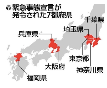 有鑒於日本各地確診病例不斷新增,安倍晉三為了遏止疫情散佈速度,4月7日傍晚正式宣布日本東京、神奈川、埼玉、千葉、大阪、兵庫及福岡7個地區進入「緊急狀態」,並強烈呼籲民眾非必要、非緊急的外出。