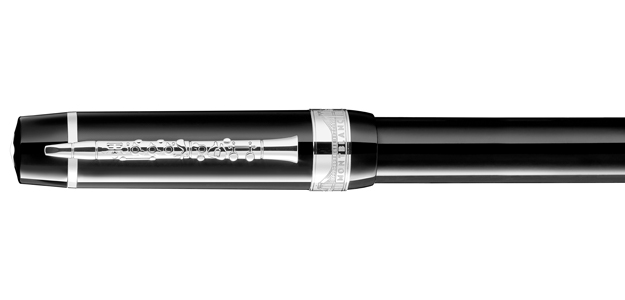 「向喬治・蓋希文致敬」音樂家系列書寫工具的筆蓋和筆身採用高級黑色樹脂材質,並搭配包鉑配件,外型之設計靈感源於萬寶龍在西元1920年代和1930年代所推出的萬寶龍Meisterstück大師傑作系列之外型,早期的音樂家系列亦採用此外型設計。蓋希文是一位天才鋼琴家,同時也是一位技藝超高的豎笛演奏家。新款書寫工具的筆夾為豎笛造型,靈感源於1924年《藍色狂想曲》中受歡迎的豎笛圓滑奏開頭。鋼筆的墨水窗採用藍色設計,亦取材自蓋希文的不朽之作。筆蓋環鐫刻這位作曲家的簽名以及著名的布魯克林大橋景色,象徵蓋希文的出生地—布魯克林。包銠Au585金質筆尖飾以非寫實的精緻大樓圖案,向《藍色狂想曲》的原始專輯封面致敬。