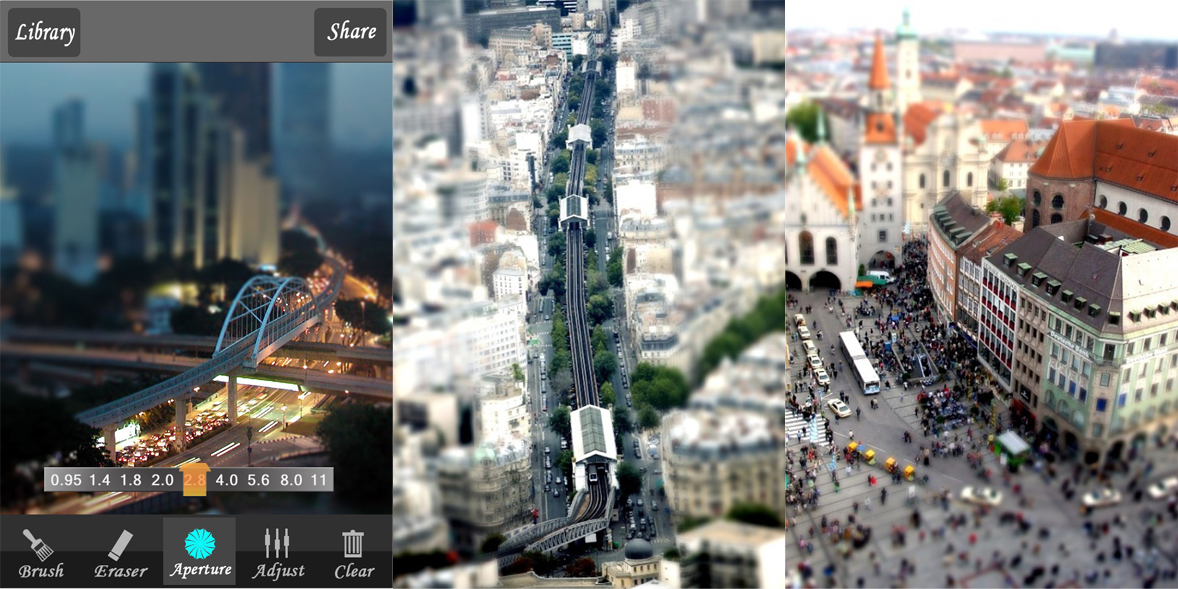 前陣子很流行將街道、建築物拍下,再用App後製,讓景物看起來像玩具一樣。而這個App也有這個功能,將車水馬龍的街道拍下,只要一按,人們和車子就會像玩具一樣,溫馨又可愛。