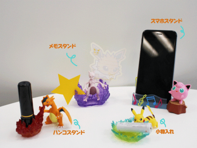 不只有萌萌的百變怪幫你整理桌子,之前日本re-ment公司也有推出寶可夢的收納盒玩,無論是筆、便條、手機、眼鏡,寶可夢們全都幫你hold得好好!有帥氣的超夢、噴火龍、水箭龜、妙蛙花,也有萌萌伊布、皮卡丘、胖丁,還有優雅的乘龍,當牠們一上場,桌面立刻變得繽紛起來惹!