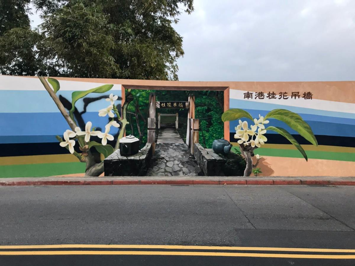 來到南港,也別錯過這面新的「3D立體彩繪牆」!台北市政府將南港區東新街的擋土牆翻新整修,把附近的松山醫療所所長宿舍、新勝公園、還有南港桂花吊橋等等景點都畫了上去。