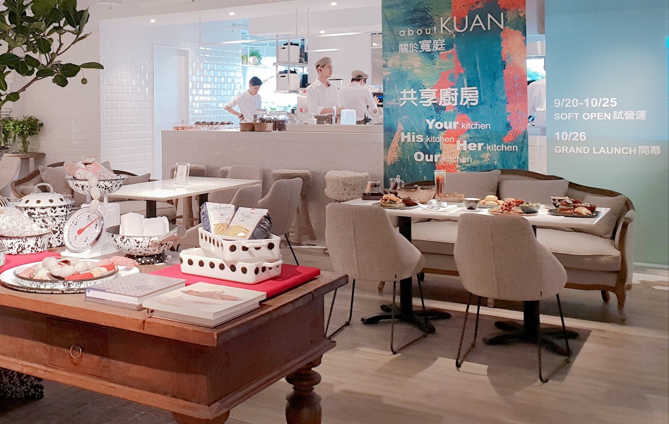 2樓「衣視野」匯聚眾多台灣設計師品牌與流行選物,另外還有生活家居品牌寬庭全新打造的「about KUAN關於寬庭」複合式餐飲,其中最吸睛的莫過於白色開放式的「共享廚房」,妞妞們可以在大片採光下一邊烹調料理ㄧ邊直播喔!