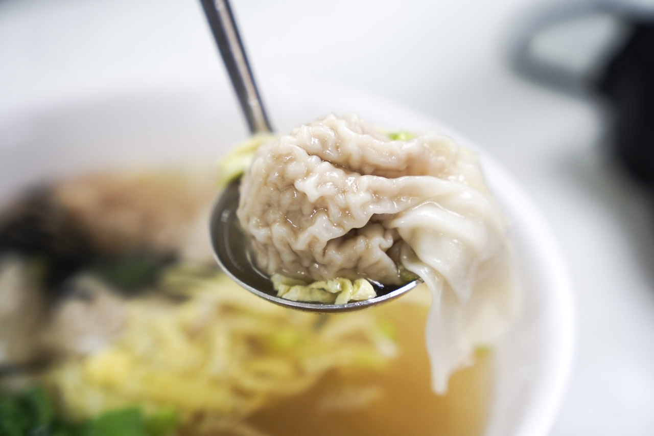 ▼裡面包的鮮蝦也蠻大隻的,肉的部分吃起來口感很容易入口,因為他已經接近肉泥了,比起碎絞肉塊型的,我個人其實比較偏好肉泥型的餛飩,所以岳家小館的餛飩也是屬於我喜愛的口味。