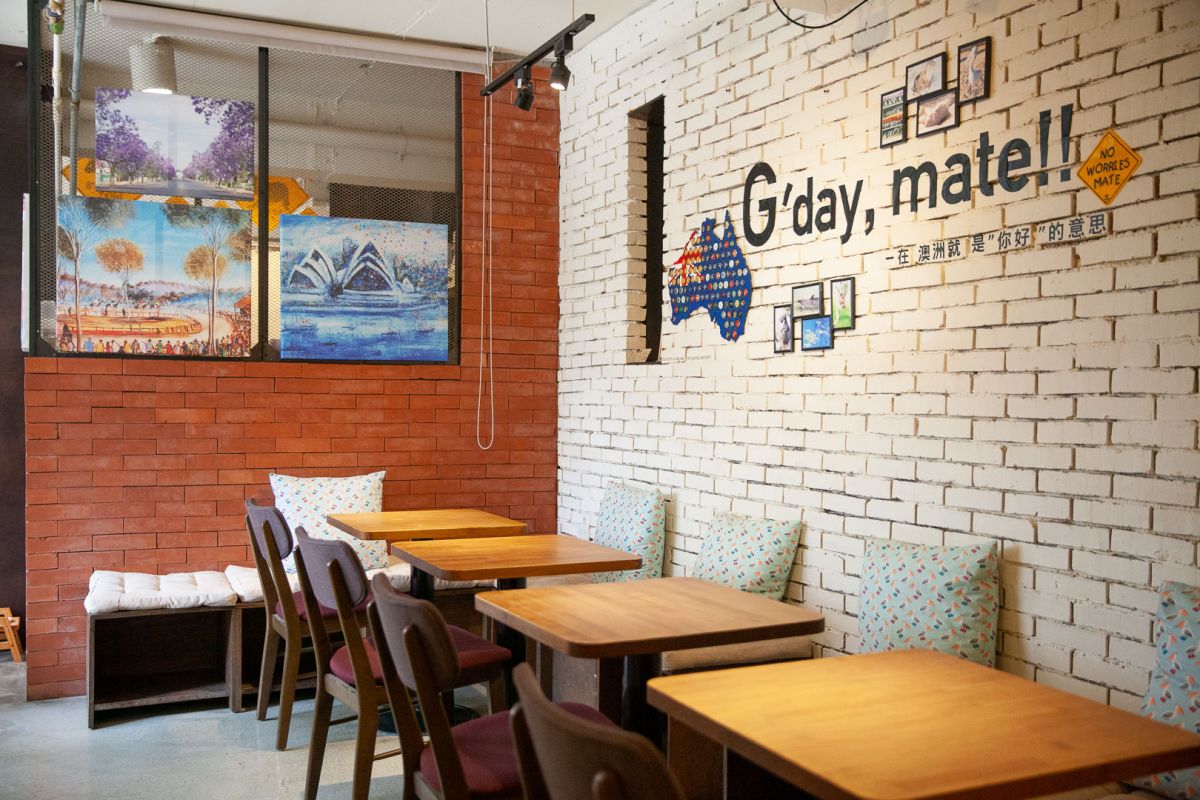 店裡的裝潢佈置充滿了許多在澳洲Working Holiday的回憶,各種的旅遊地圖和指南、書籍、啤酒、網球拍以及明信片和國旗等等,踏進咖啡廳就像是走進了時光機,把空間和時間都回到了在澳洲當背包客的日子,就連店裡的餐點和咖啡裝飾都有著澳洲的元素呢!