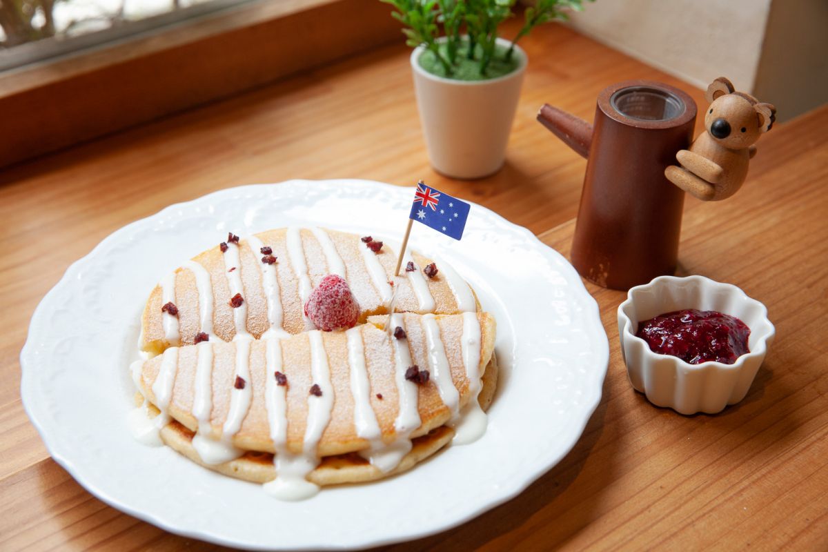 店裡的甜點、蛋糕都是手工製作的,像是澳洲在地的「萊明頓蛋糕」在這裡也吃得到~老闆更是大推自家的鬆餅,「酸酸甜甜好像初戀Pancake」是用自製的莓果醬