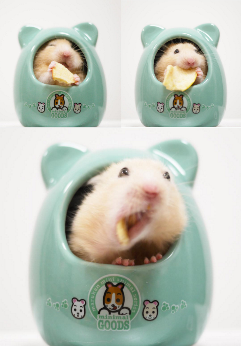 妞編輯最喜歡看ナッパ縮在玻璃杯內,仔細地啃食食物。ナッパ小手拿食物的樣子太Q了!