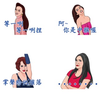 「做你攏麥回〜」,連已讀不回都不像一般貼圖直接寫出來,身為伴唱帶女郎就是要用唱〜的〜呀!而且細看就會發現,女郎們的單品頗為時尚,那副圓墨鏡可是當今街拍型人的愛呀!