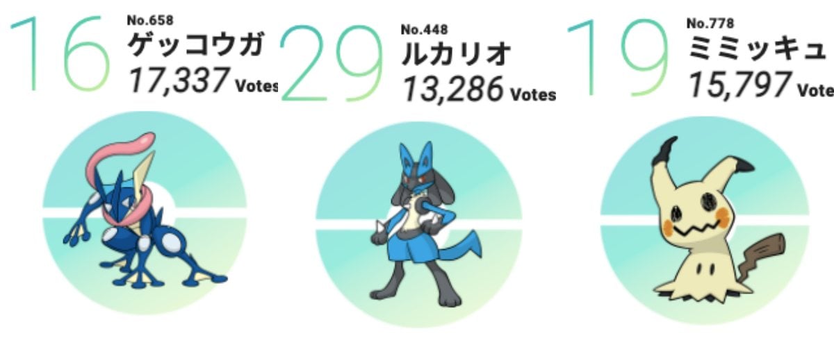 去年的前三名在今年名次掉到了超後面(QQ),甲賀忍蛙第16名、路卡利歐第29名,而謎擬Q則變成了第19名!台灣的票選結果將在2月27日揭曉,敬請期待。最後貼心附上日本票選結果給各位(點我前往),快看看你喜歡的角色獲得第幾名吧!