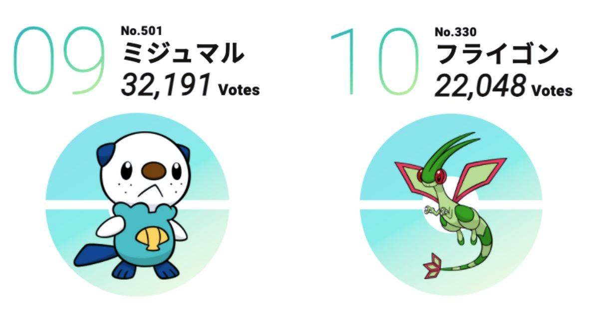 可愛的水水獺與沙漠蜻蜓則各拿下第九、第十名。其實這十隻寶可夢在選前速報即為前十名,沒有黑馬成功殺進榜單,也沒有誰在最後被踢出十名之外,只是最終的排名有改變而已。
