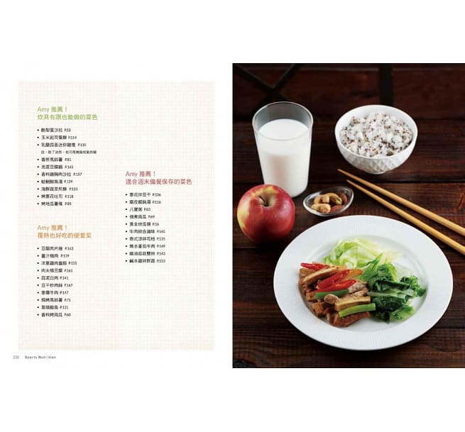 那到底要怎麼輕鬆下廚呢?Amyの私人廚房聯手好食課營養師團隊,打造出「下廚零門檻、專業營養把關的家常食譜」,不只採買方便、省時又簡單上手,還貼心設定「高蛋白週、減脂週、減醣週、低碳週」一週菜單配餐,不用一直算數值,跟著吃就能達成健身目標,搭配飲食小建議註記,針對某些運動後的困擾,像是減少痠痛、補充鈣質、想防止脂肪堆積…等需求都有功能性食材以及菜色推薦,運動時備好這本就萬無一失了!