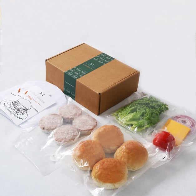 「My HANDBurger Kit」DIY手作漢堡盒,內含四組漢堡配料,包含Choice等級牛肉排、漢堡麵包、番茄、紫洋蔥、萵苣、起司等生鮮食材,M One Cafe一次幫大家備齊所有配料,妞妞們只需要進行「煎肉排」和「組裝」這兩個動作,不用幾分鐘的時間即可在家大啖宛如餐廳的高CP漢堡啊!