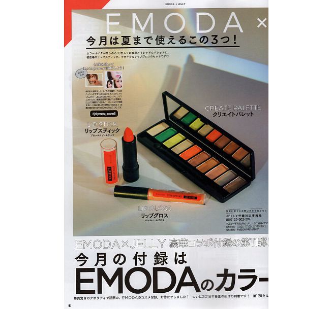 炎炎夏日來了、化妝品也是要換個季!這次《JELLY》附贈的EMODA豪華美妝組根本就是專為夏天所設計,不僅祭出10色繽紛俏皮的眼影盤,還另外附贈橘色系唇膏&唇蜜,今年夏日的清新妝容靠這組就夠了!