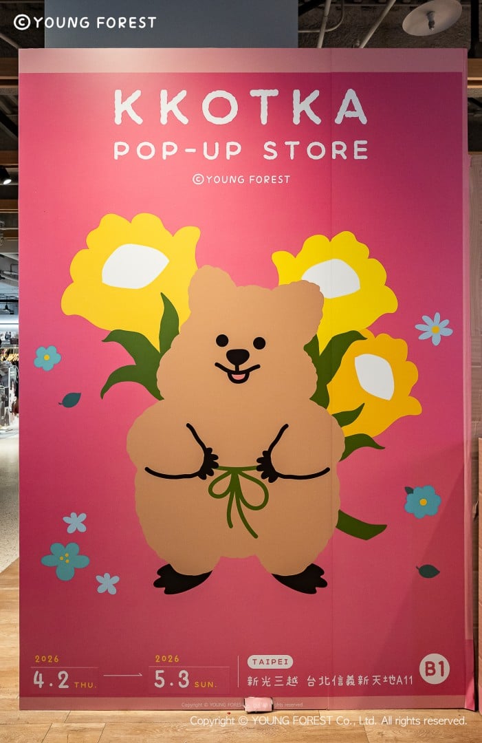 最萌的短尾矮袋鼠「勾卡 KKOTKA」在今年春天帶著黃色含羞草來報到啦!本次快閃店於台北新光三越 A11 的 B1 開跑,現場除推出五大必拍打卡點,還有近50款的全新周邊,集結實用小物及可愛珍藏等,全都要讓粉絲們通通帶回家!