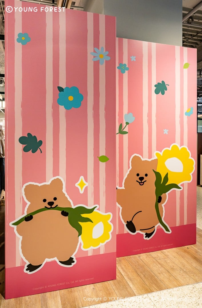 呼應本次快閃店的主題,「主視覺打卡牆」特別呈現將三朵黃色含羞草花花綁在身上的勾卡,讓他用最溫暖的笑容迎接粉絲們的到來。