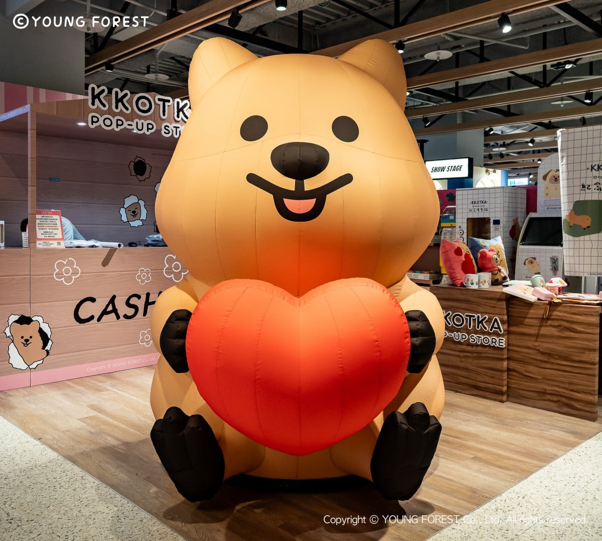 來到快閃店,一眼就能撇見高達200公分的「愛心勾卡KKOTKA」充氣玩偶,看著雙手抱著巨大紅心的勾卡,配上經典吐舌萌趣表情,怎麼能不拍照打卡!
